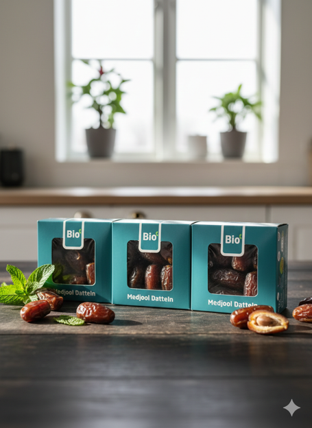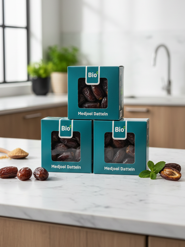 Erstklassige Medjool-Datteln, besonders saftig und weich, sorgfältig ausgewählt, um den höchsten Qualitätsstandards zu entsprechen.